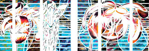 2009Sjabloonschilderij: Ingelijst achter glas.